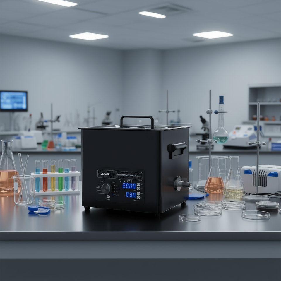 Pulitore a Ultrasuoni 10L con Display Digitale e Controllo a Manopola, 40kHz, Riscaldamento, per Uso in Laboratorio