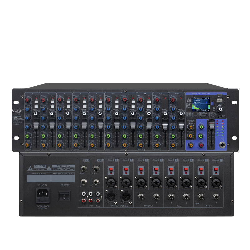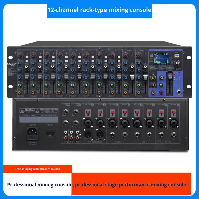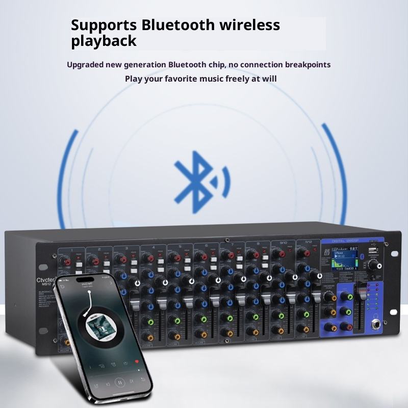 Mixer Console Musicale Professionale a 12 Canali in Metallo, Compatibilità 110-250V, Dimensioni 31.5x22.5x5.5cm per Performance sul Palco