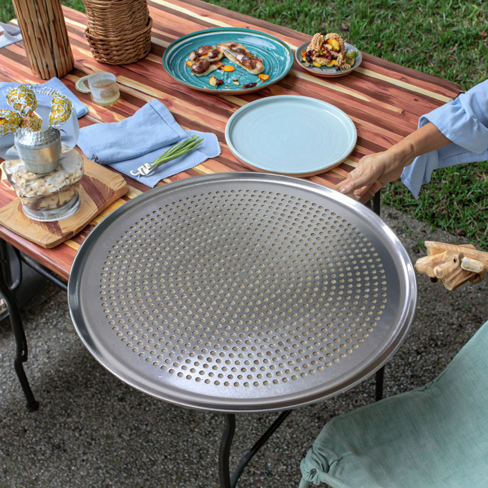 Disco per Pizza in alluminio, padella per pizza perforata, vassoio di cottura