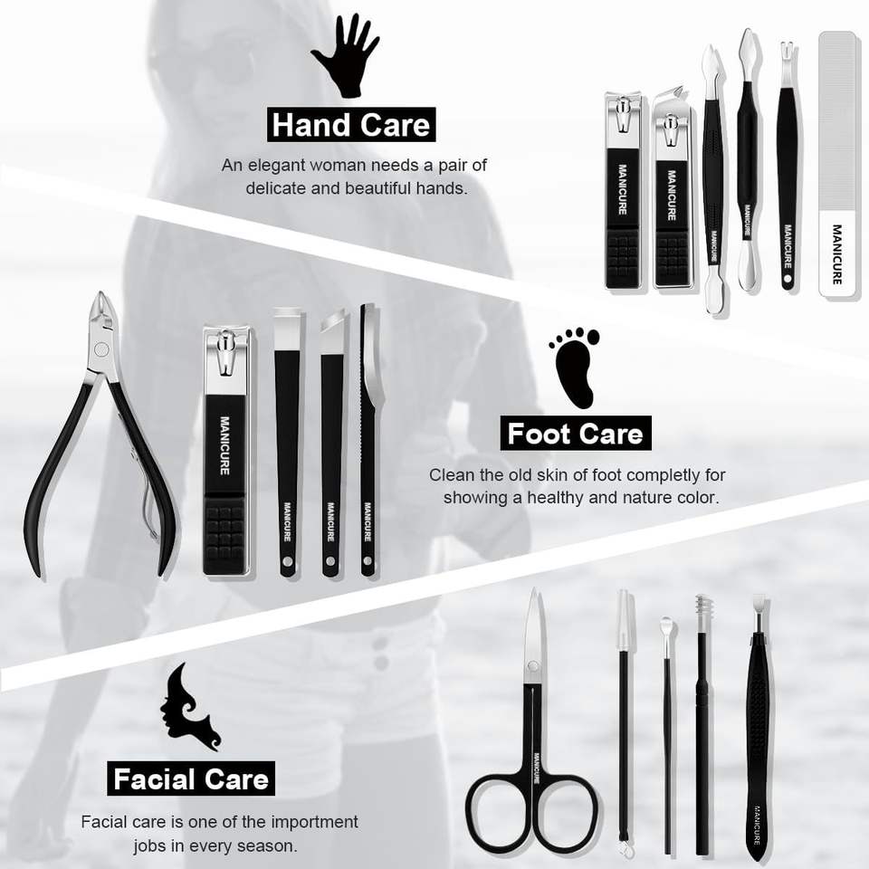 Set Professionale di 16 Pezzi per la Cura delle Unghie in Acciaio Inossidabile, Kit per Manicure e Pedicure, Lussuoso Set da Viaggio, Idee Regalo per Affari