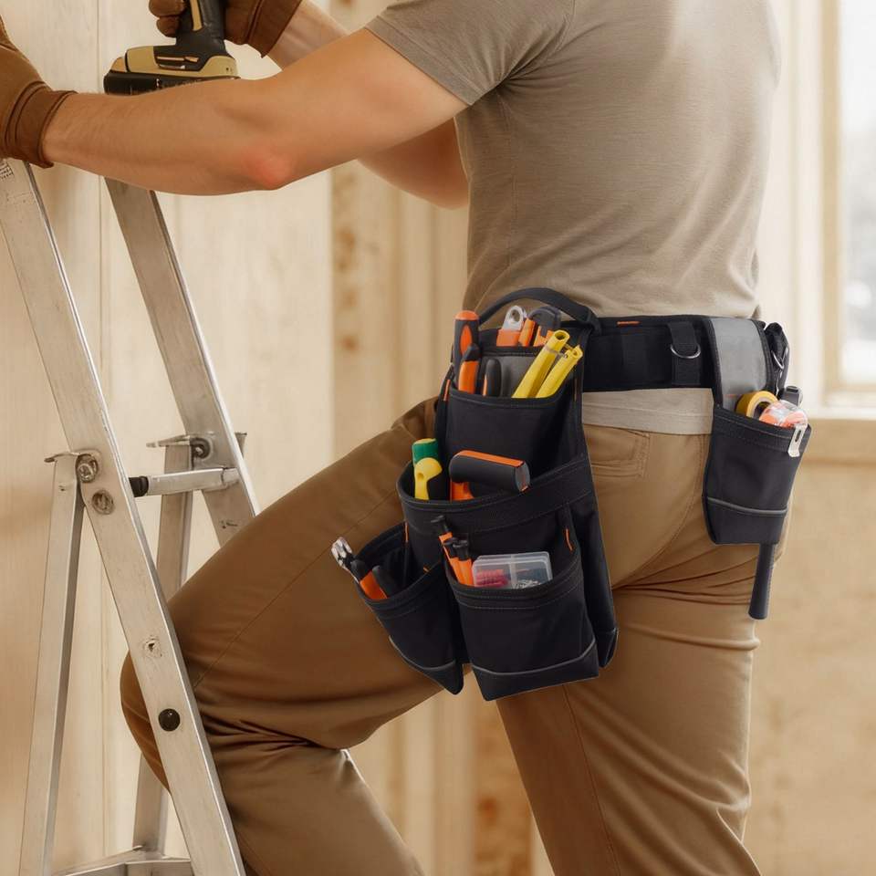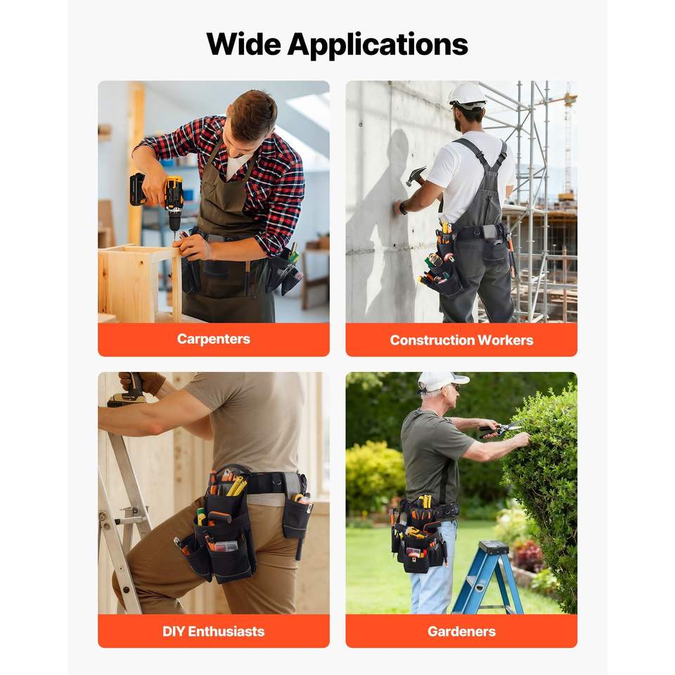 Cintura Porta Attrezzi Professionale a 18 Tasche per Uomo, Cintura Regolabile Resistente con Borsa da Lavoro Staccabile per Elettricisti