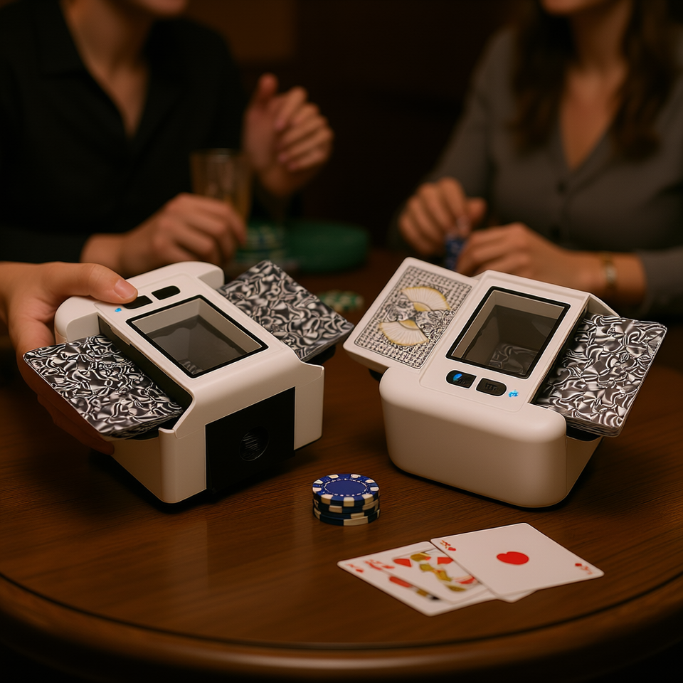 Mischiatore di Carte Automatico Ricaricabile Professionale per Poker e Texas Hold'em - Doppia Modalità, Alimentazione a Batteria e USB, Plastica Bianca