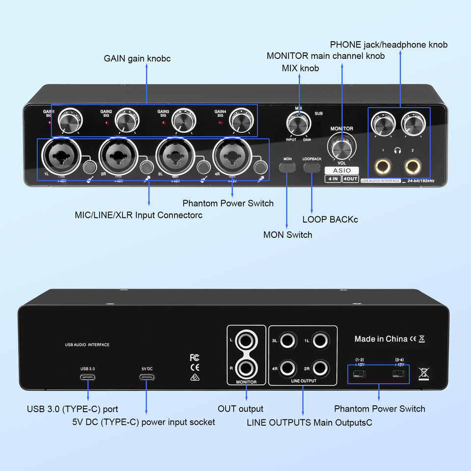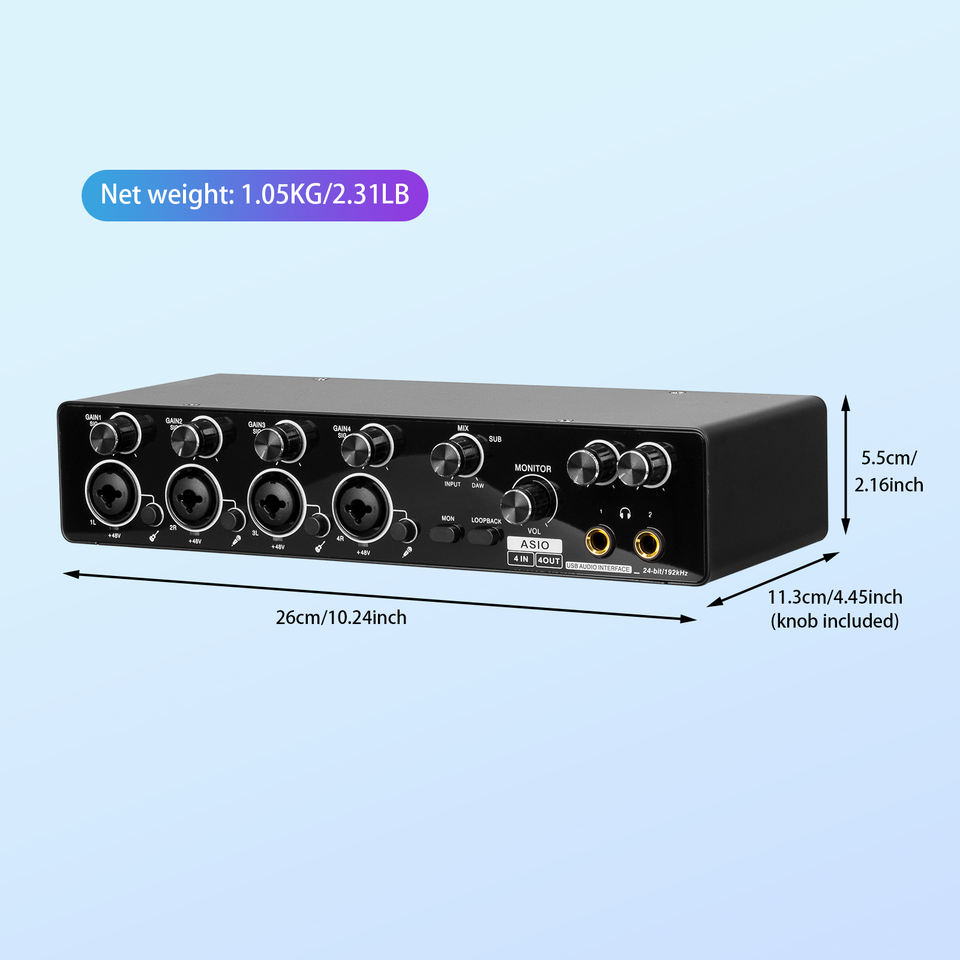 Interfaccia Audio USB Professionale a 4 Canali con Preamplificatore Microfonico ASIO per Registrazione dal Vivo