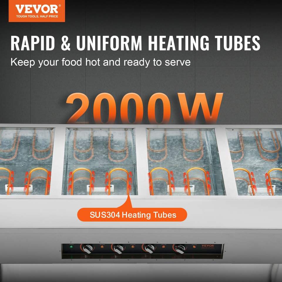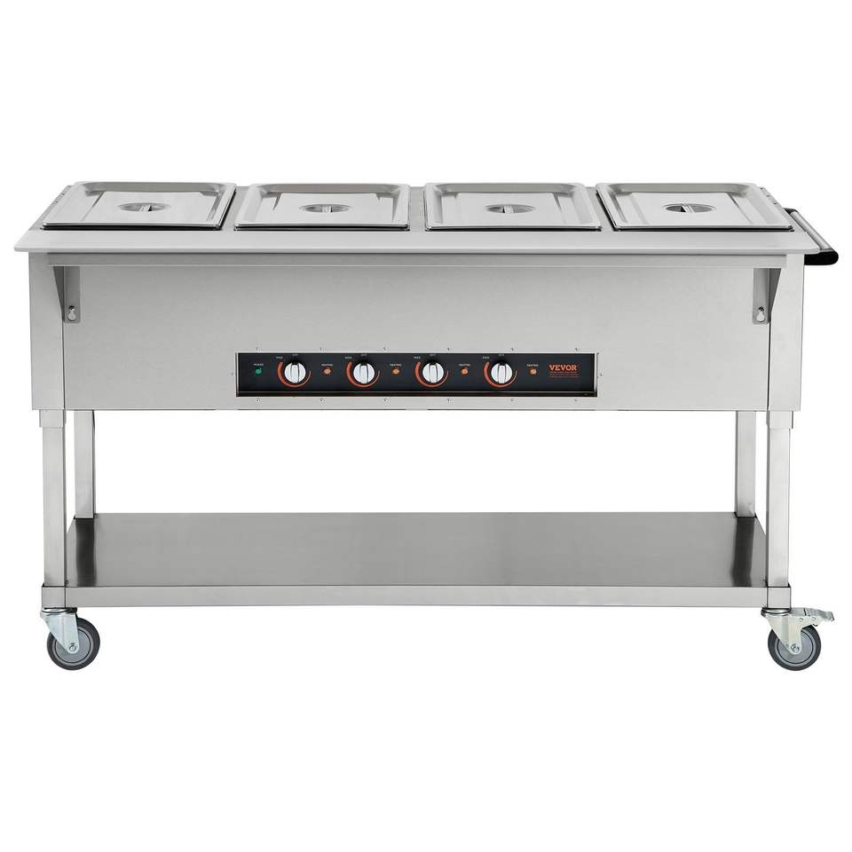 Scaldavivande Professionale Commerciale a 4 Vasche 20.6QT, Tavolo Elettrico a Vapore 2000W, Attrezzatura per Mantenimento Calore con 4 Ruote per Buffet