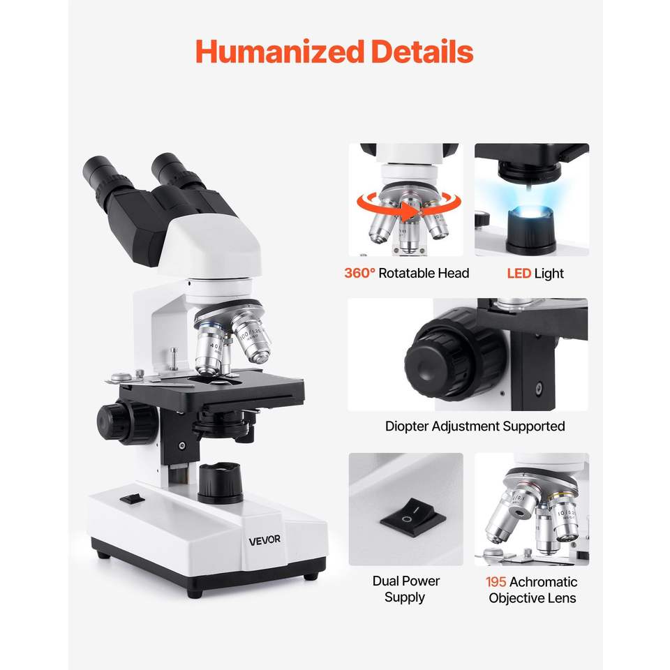 Microscopio Binoculare Professionale con Ingrandimento 40-5000X per Adulti, Serie di Microscopi con Doppio Oculare e Base a Due Livelli