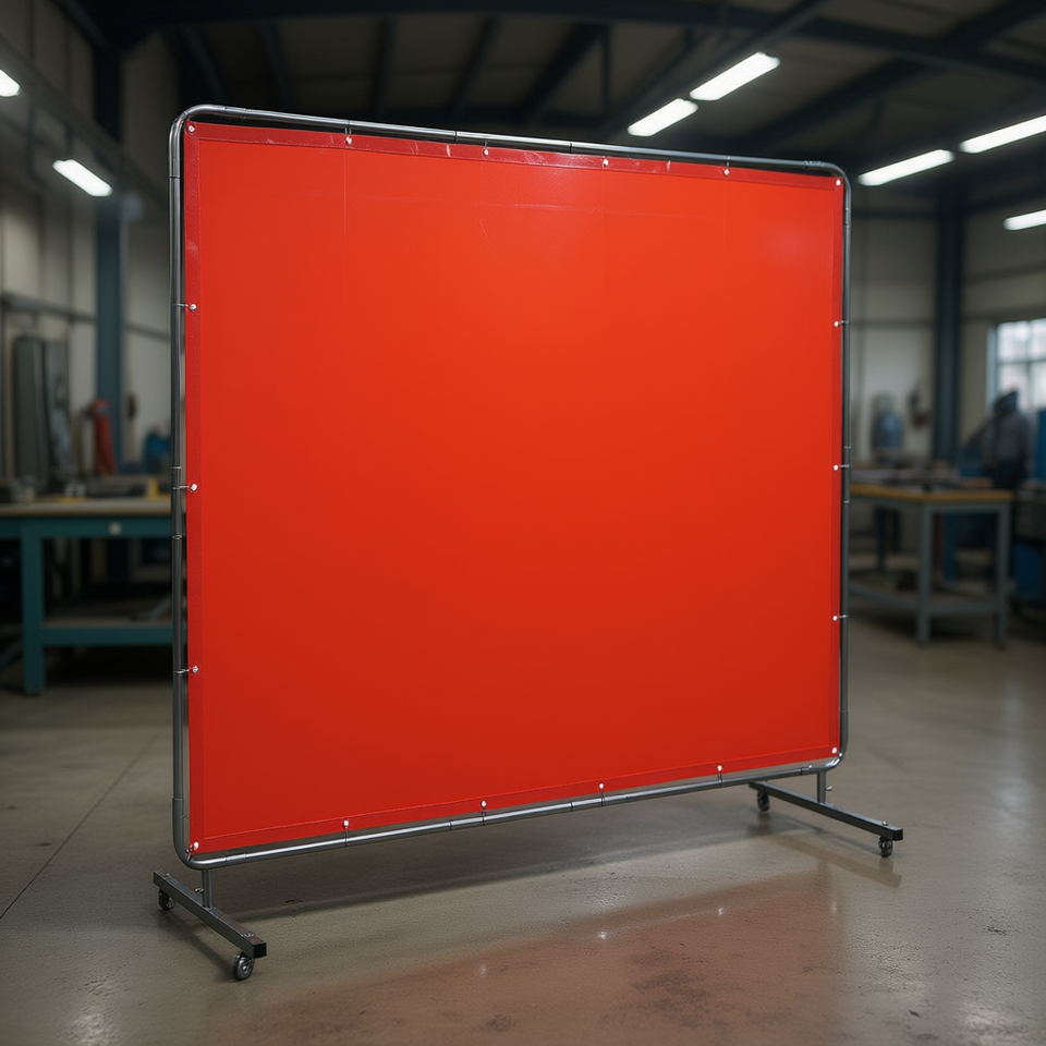 6 X 8 Ft Red Vinyl Welding Screen Frame With 4 Swivel Wheels Moveable Industrial Workshop Curtain