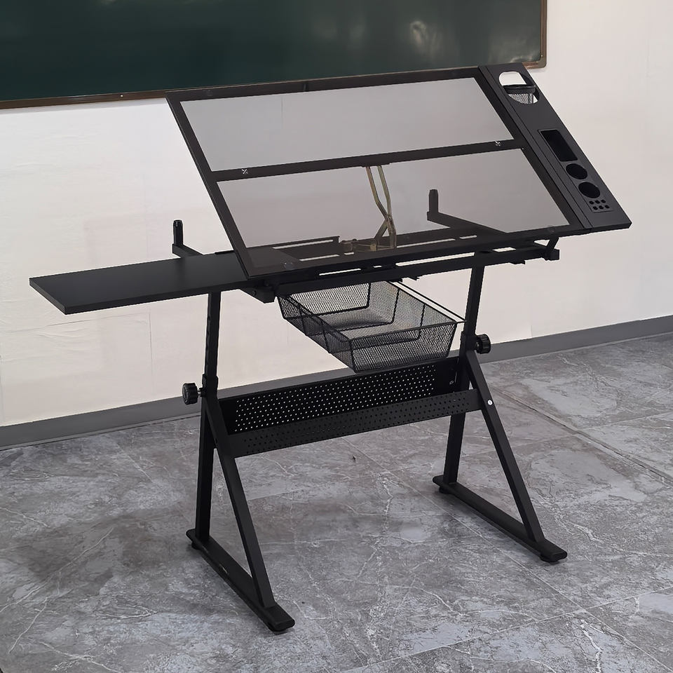 Tavolo da Disegno Professionale Regolabile in Vetro Temperato per Artisti, Architetti e Uso Scolastico per Postazione di Lavoro per Progetti