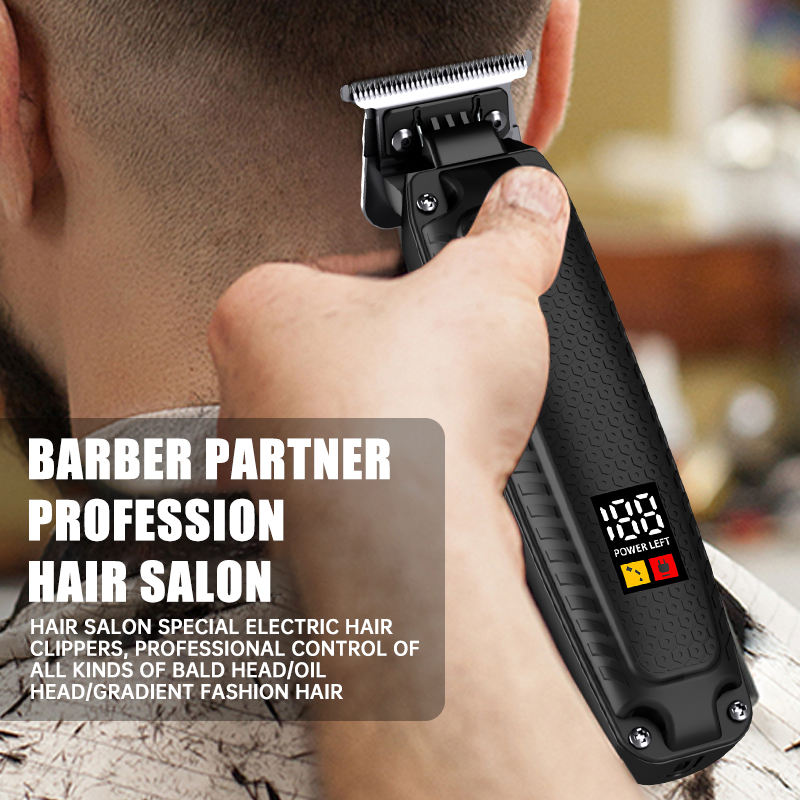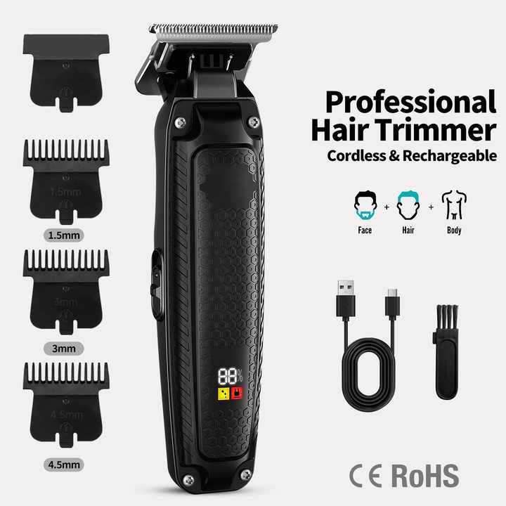 Tagliacapelli Elettrico Professionale per Uomo con Lama in Acciaio Inossidabile Nero, Trimmer Cordless per Barba e Capelli