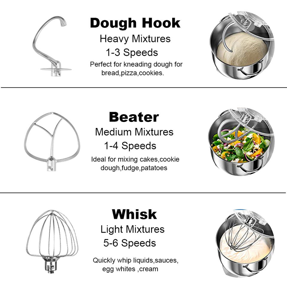 Gancio della pasta, Battitore piano, Ciotola per miscelare, Frusta del legare