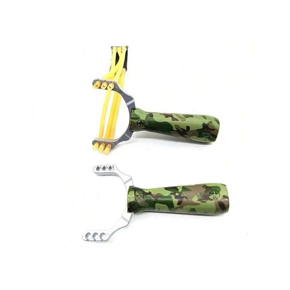 Manico mimetico professionale in lega di zinco fionda da caccia e tiro all'aperto 1 pezzo elastico multicolore 14 anni +