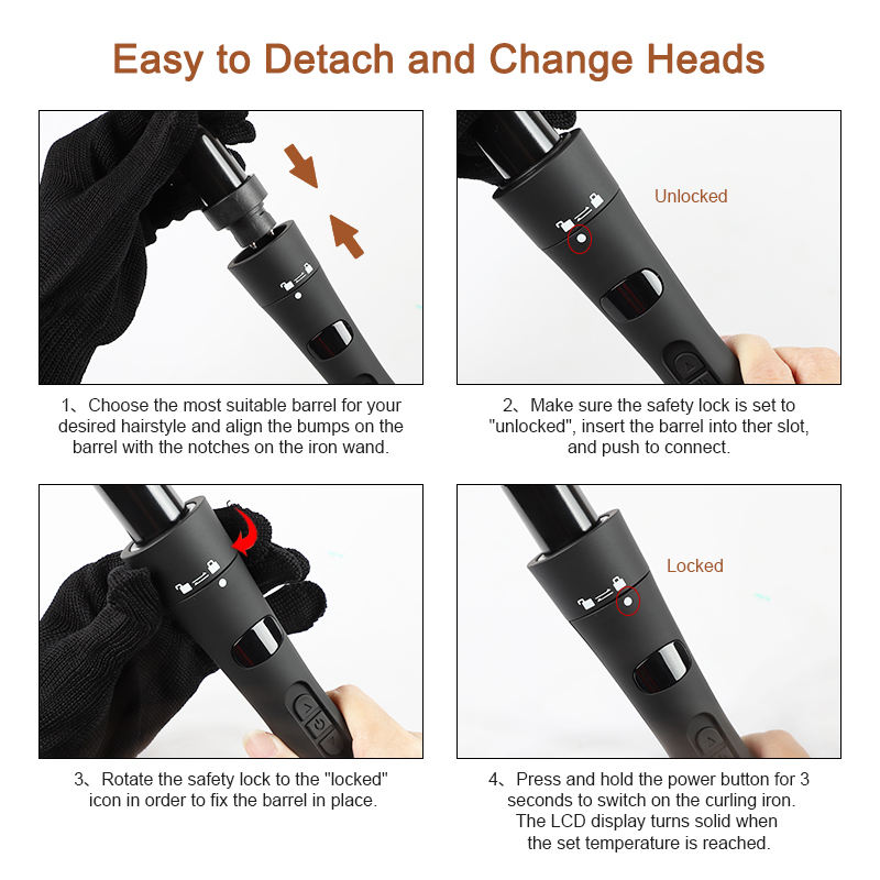 Funzione:1 testine intercambiabili ferro arricciacapelli