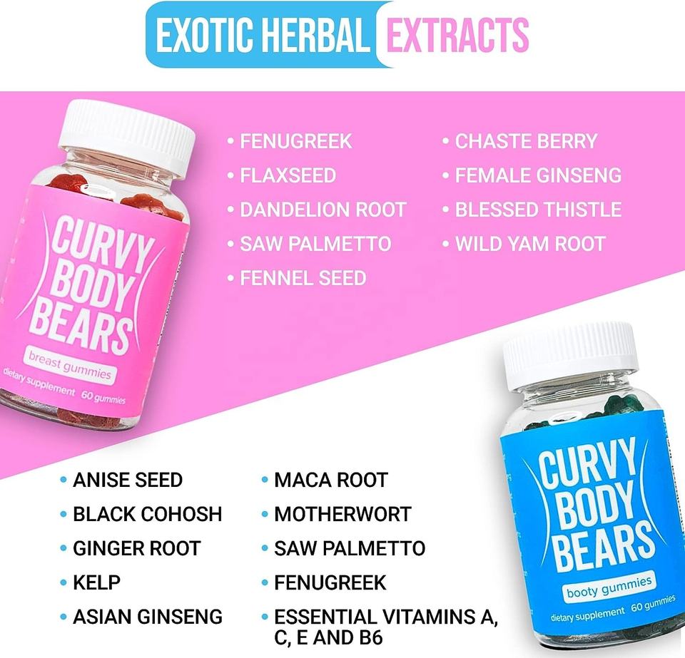 Gummies professionali Curvy Body Bear busto e culo più grandi con erbe essenziali supporto per allenamento multivitaminico per adulti