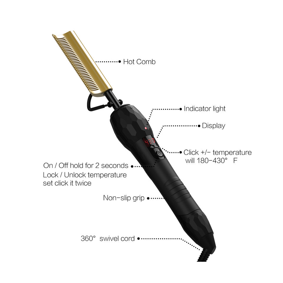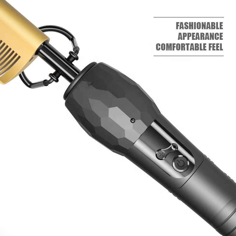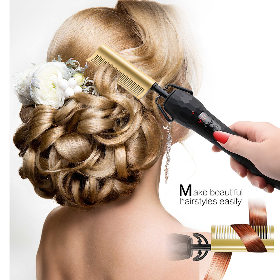 Professional Digital 200--500F Curved Beard Heat Combs Hair Straightener Brush Electric Pressing Hot Comb for Natural Black Hair
