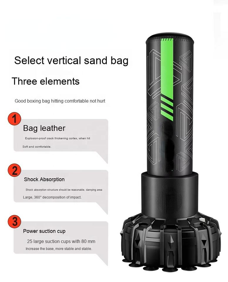 Professional Free Standing PU Leather Punching Boxing Bag with Protection Cover Suction Cups Filled Sand for Striking Kicking
