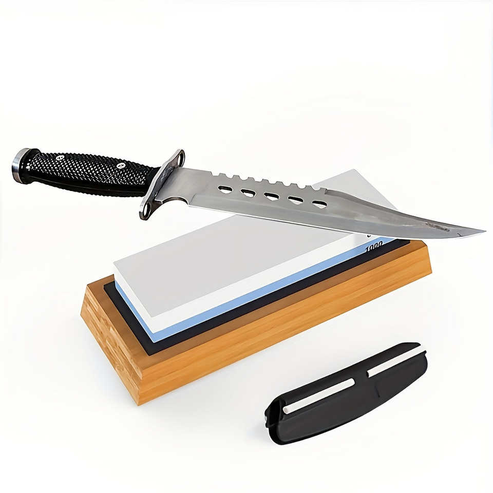 Affilacoltelli professionale manuale a doppia faccia con pietra da 1000/6000 grana, base antiscivolo in bambù, angolo regolabile, per esterni, con pietra d'acqua.
