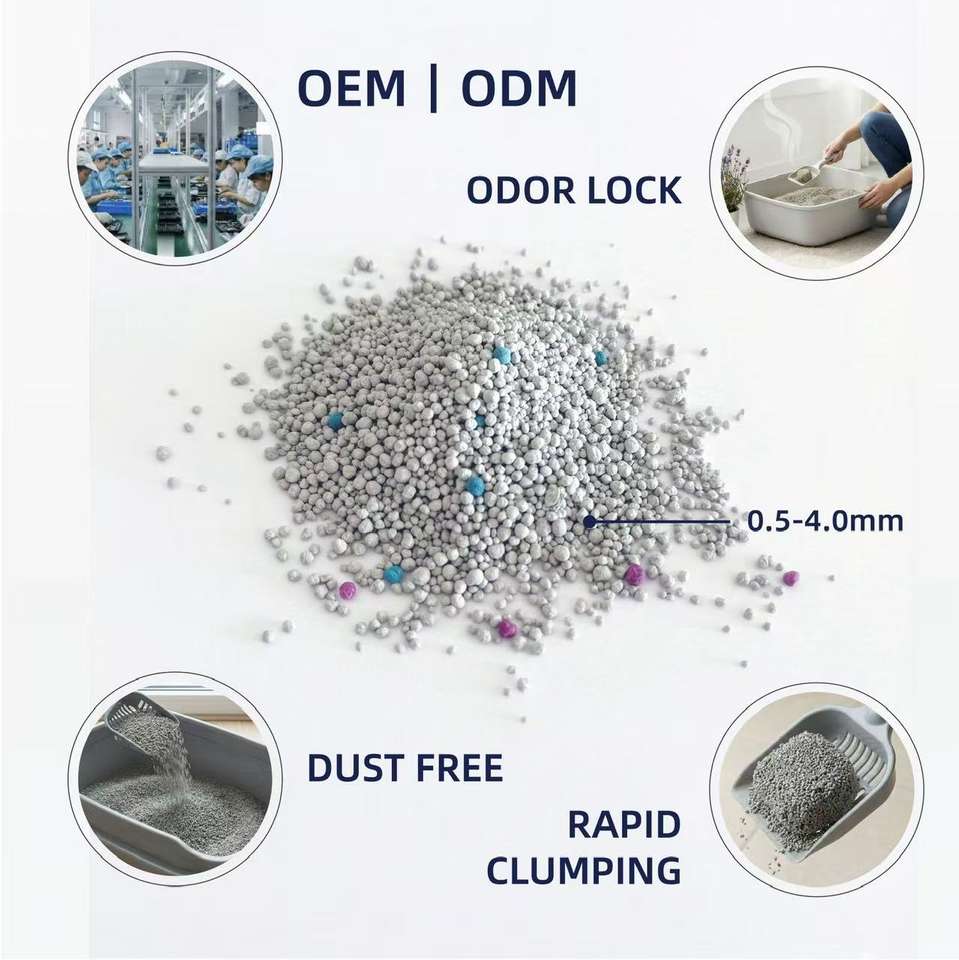 Ecologico, bassa polvere, agglomerazione rapida, altamente adsorbente, controllo odore, 99% senza polvereCaratteristiche
