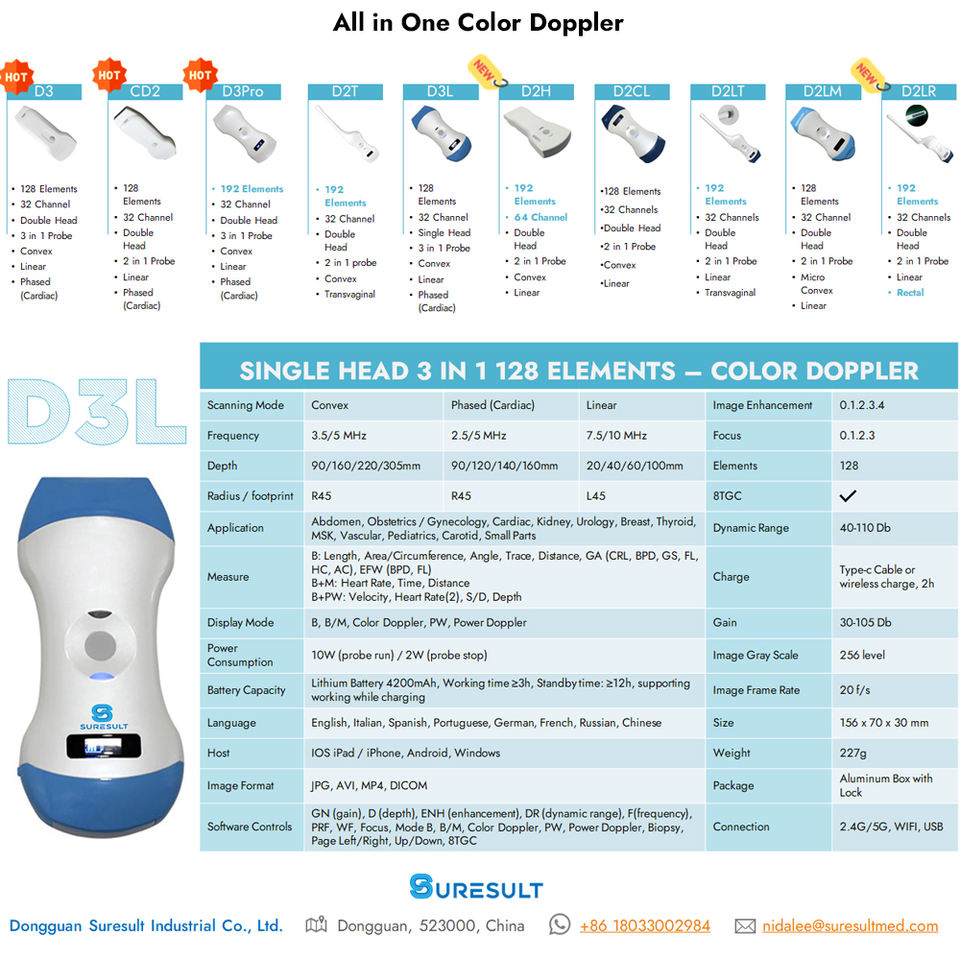 Professional Handheld Ultrasound Device with 128 Elements and L45 Footprints for Veterinary Use and Medical Imaging