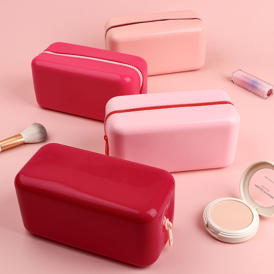 Borsa per Trucco Professionale Personalizzata in Silicone Lucido con Cerniera, Astuccio da Viaggio per Pennelli da Trucco