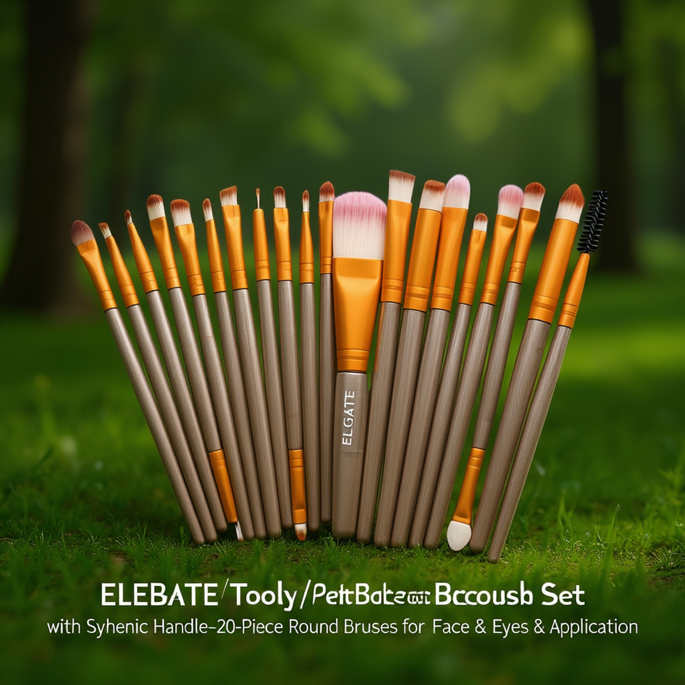 Elegate 20-Piece Professional Makeup Brush Set with Synthetic Hair and Metal Handle for Face and Eye Application, Round Brushes