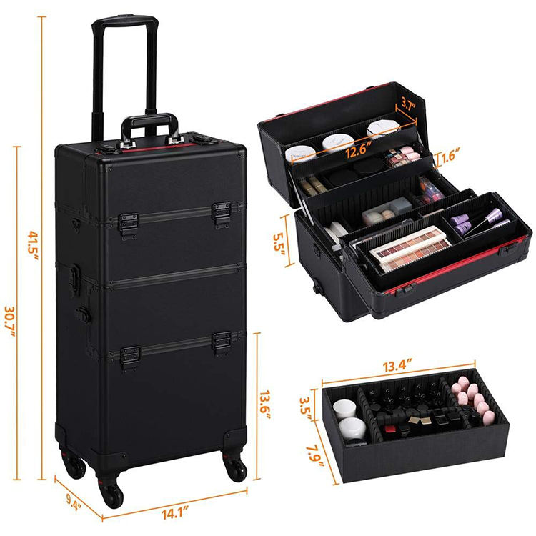 Materiale trolley per il trucco delle ruote:Alluminio, cuoio, PVC, EVA