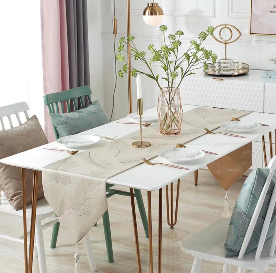 Professional Manufacture Leaves Table Runner Wedding Jacquard Table Runner Superior Quality Beige Table Runner