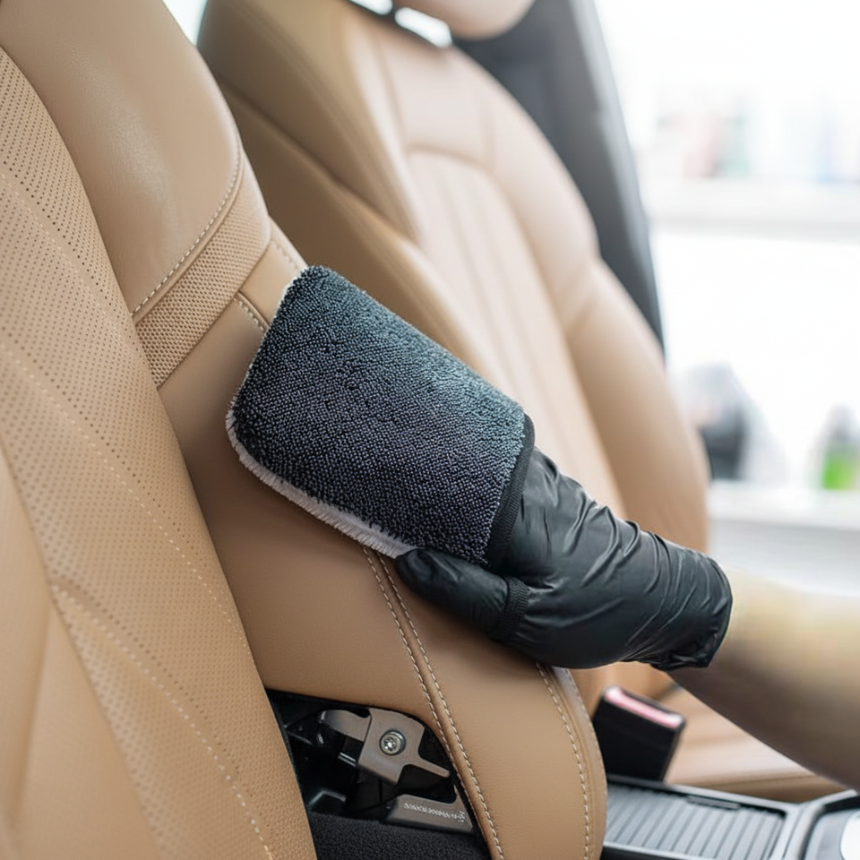 Guanto Professionale in Microfibra per Dettagli Interni Auto, Spazzola a Spirale per Pulizia Efficace di Sedili in Pelle e Tappezzeria