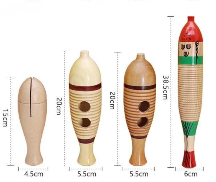 Set Professionale di Percussioni Orff: Guiro a Forma di Rana e Pesce in Legno | Raschietto e Blocco di Legno per Musica