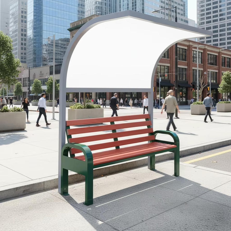 Professional Outdoor Bench with Awning Sunshade Wood Grain Rest Seating for Playground Sports Field Commercial Community Park