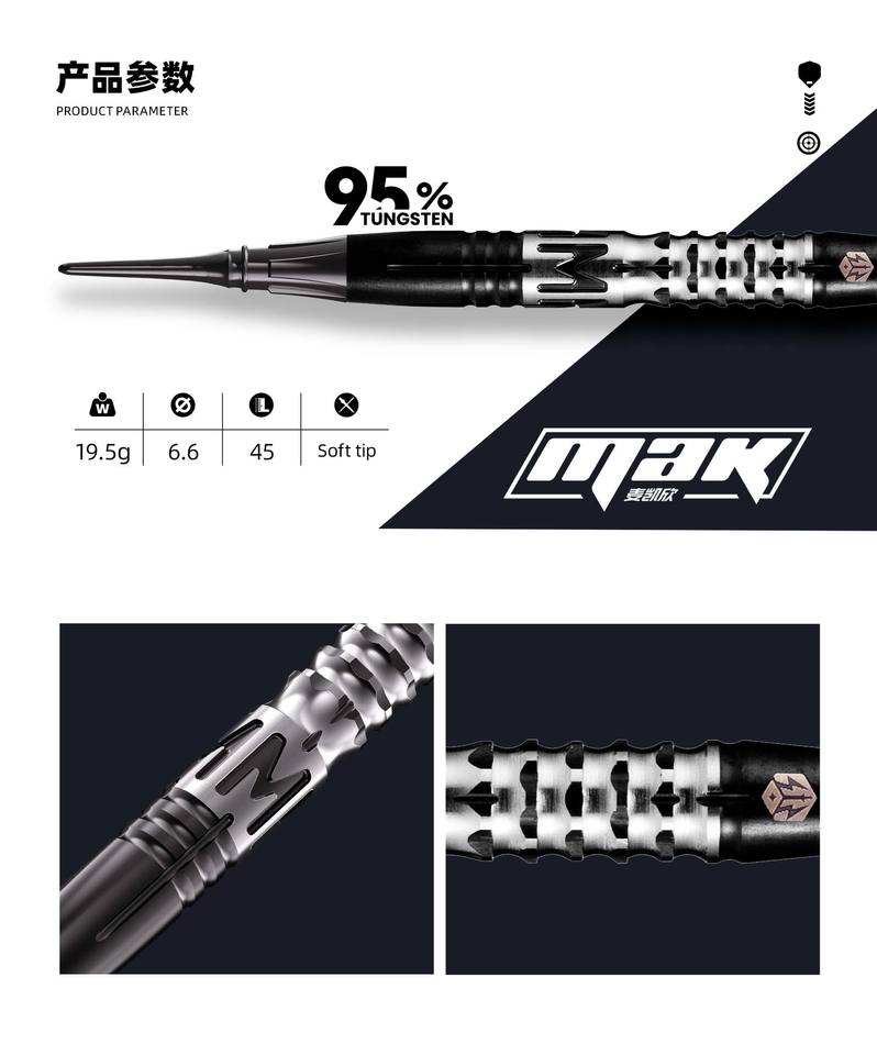 Collezione giocatore professionista Caliburn Mak 19.5g 21.5g 23.5g in acciaio e punte morbide 3 pezzi Set 90% freccette al tungsteno