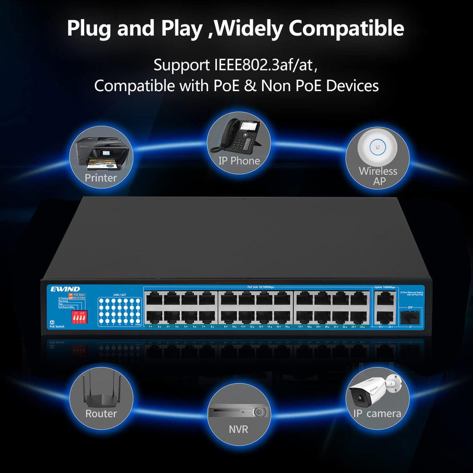 Switch PoE Professionale da Fabbrica, 4/8/10/16/24/48 Porte, Switch di Rete 100M o Full Gigabit, Produttore Originale per Sicurezza CCTV