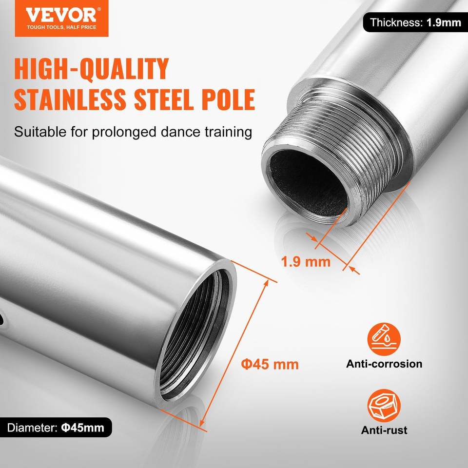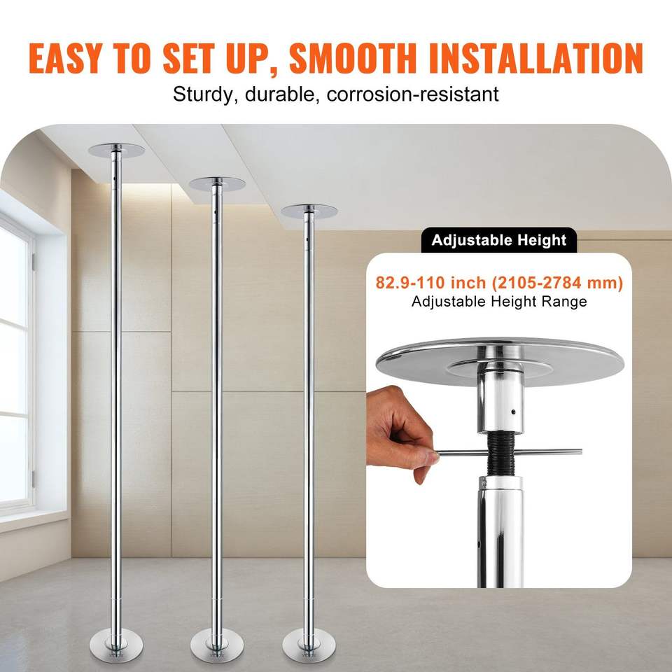 Kit Professionale Portatile per Palo da Ballo in Acciaio Inossidabile da 45mm, Palo Statico e Girevole Rimovibile con Cuscinetti Hei Dance 82-108