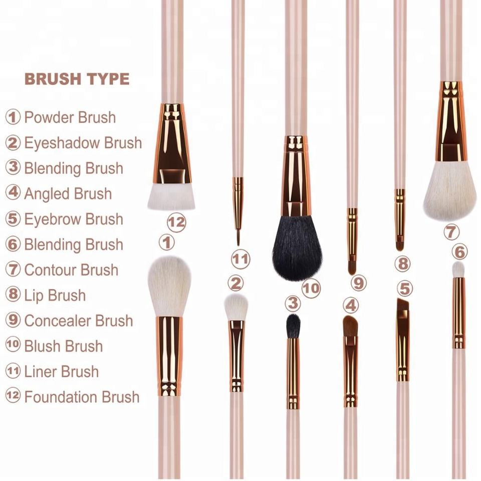 Nome del prodotto:pennello per trucco in lana professionale in pelo naturale di capra, colore oro rosa