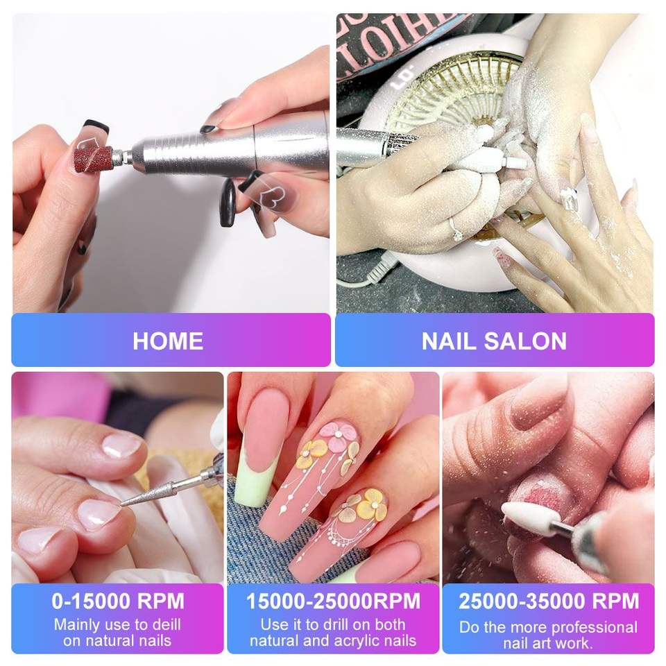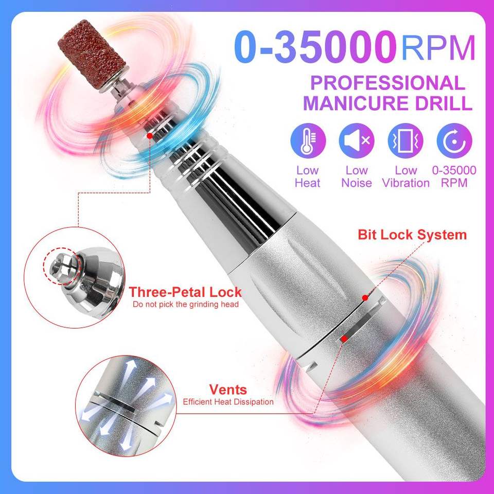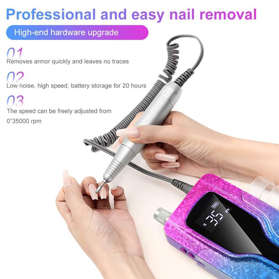 Trapano Elettrico Professionale Ricaricabile per Unghie 35000RPM con Display LCD e Velocità Regolabile per Unghie in Acrilico e Lima per Unghie