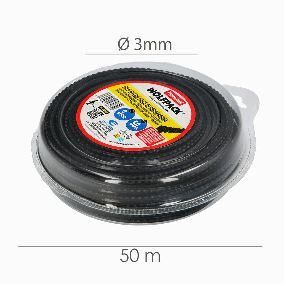 Filo professionale quadrato seghettato in nylon/alluminio 3 mm x 50 metri.
