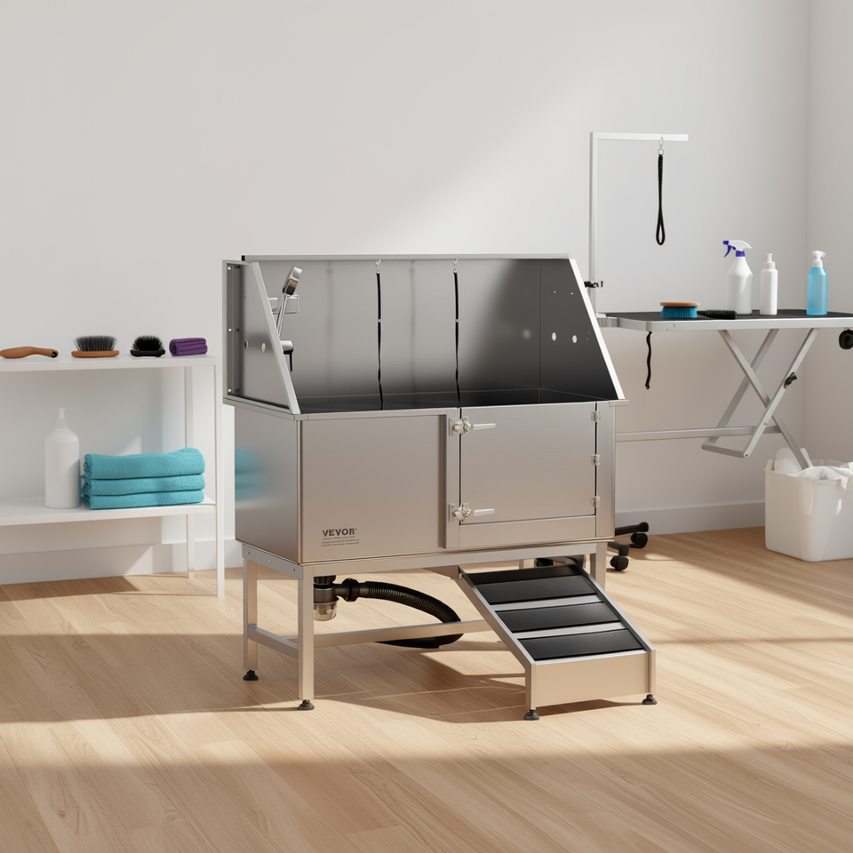 Stainless Steel Dog Grooming Tub 50 Inch With Ramp Faucet Professional Pet Bathing Station For Large Medium Small Dogs
