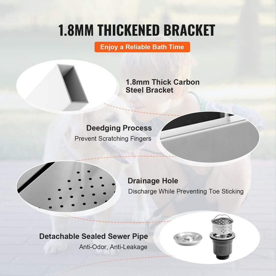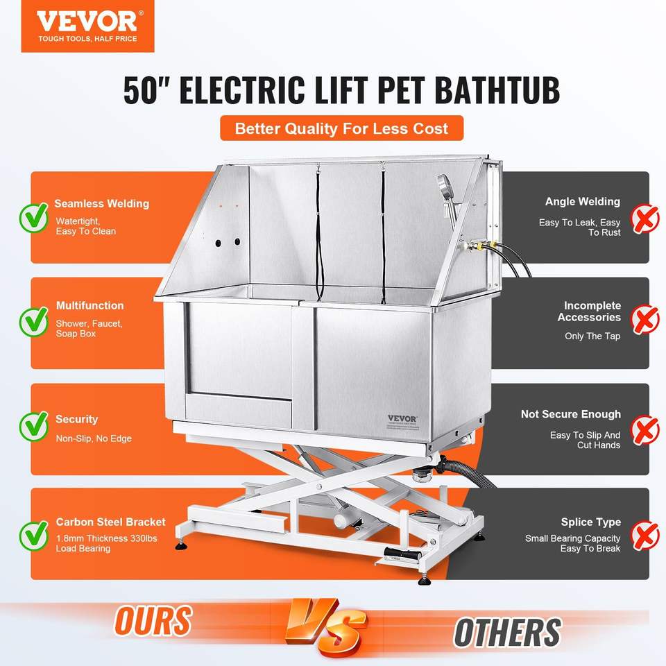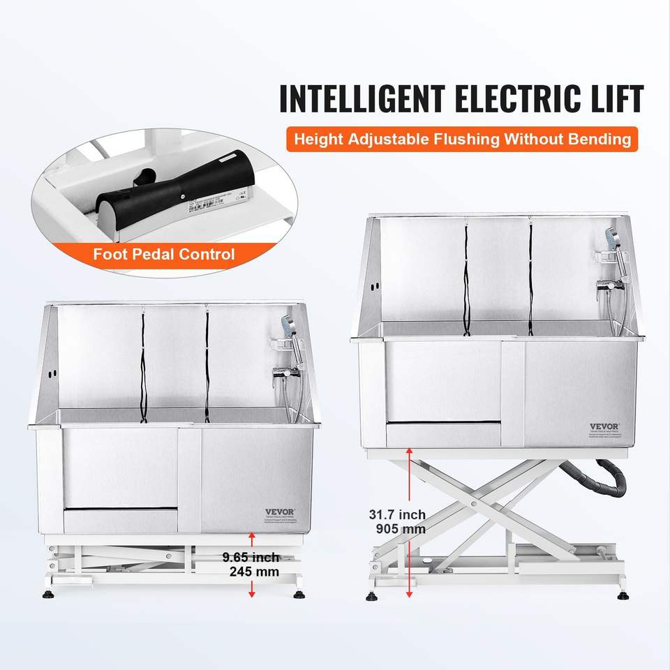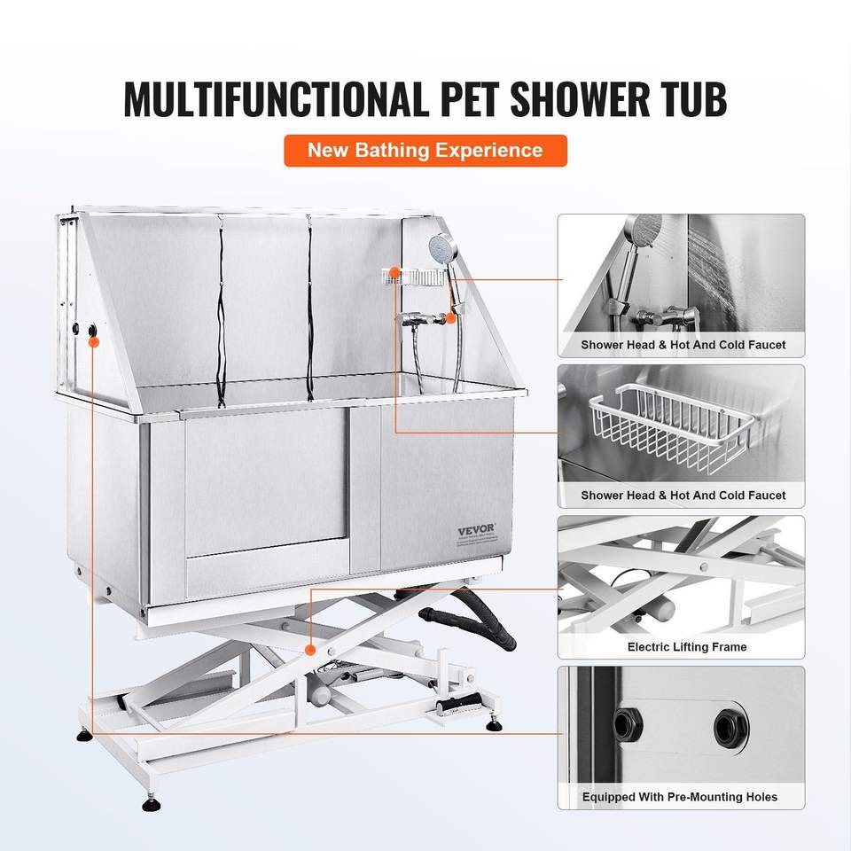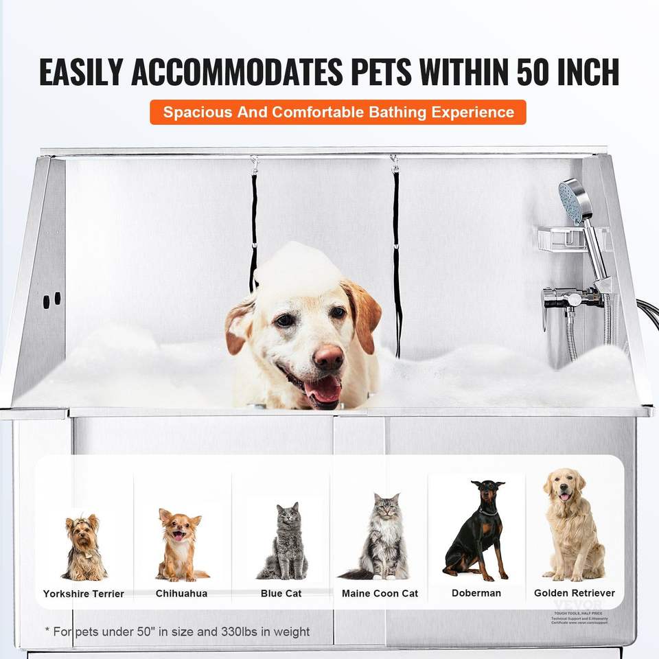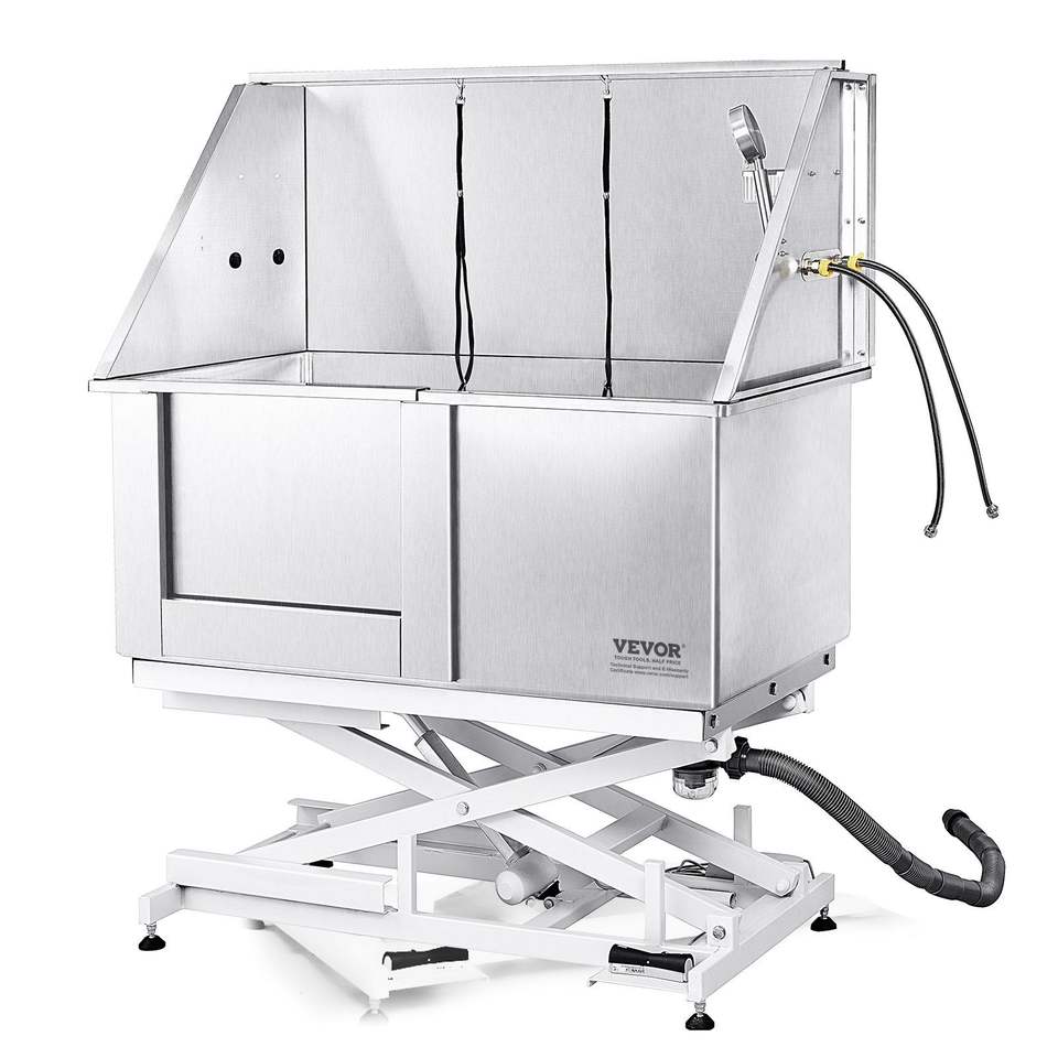 Vasca Professionale per Toelettatura Cani in Acciaio Inossidabile 50 Pollici, Stazione di Bagno per Cani con Regolazione Elettrica dell'Altezza, Rubinetto e Portasapone