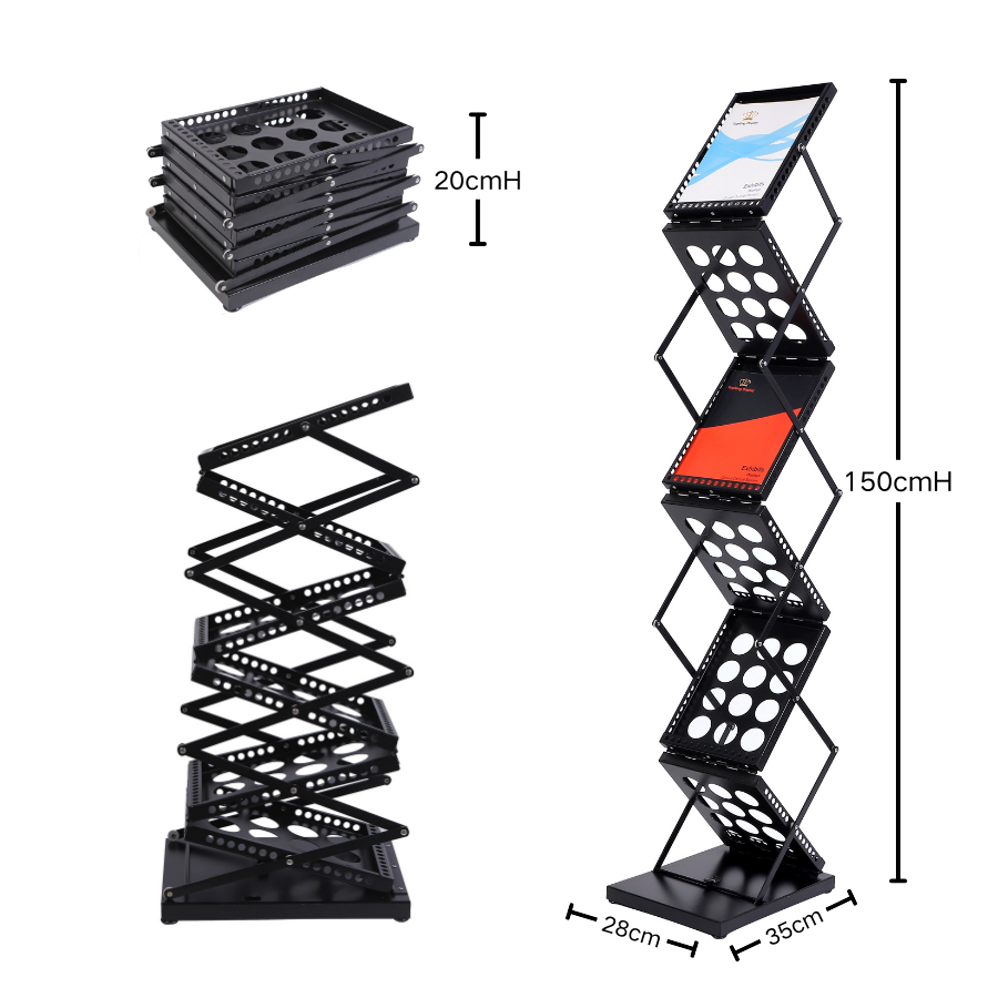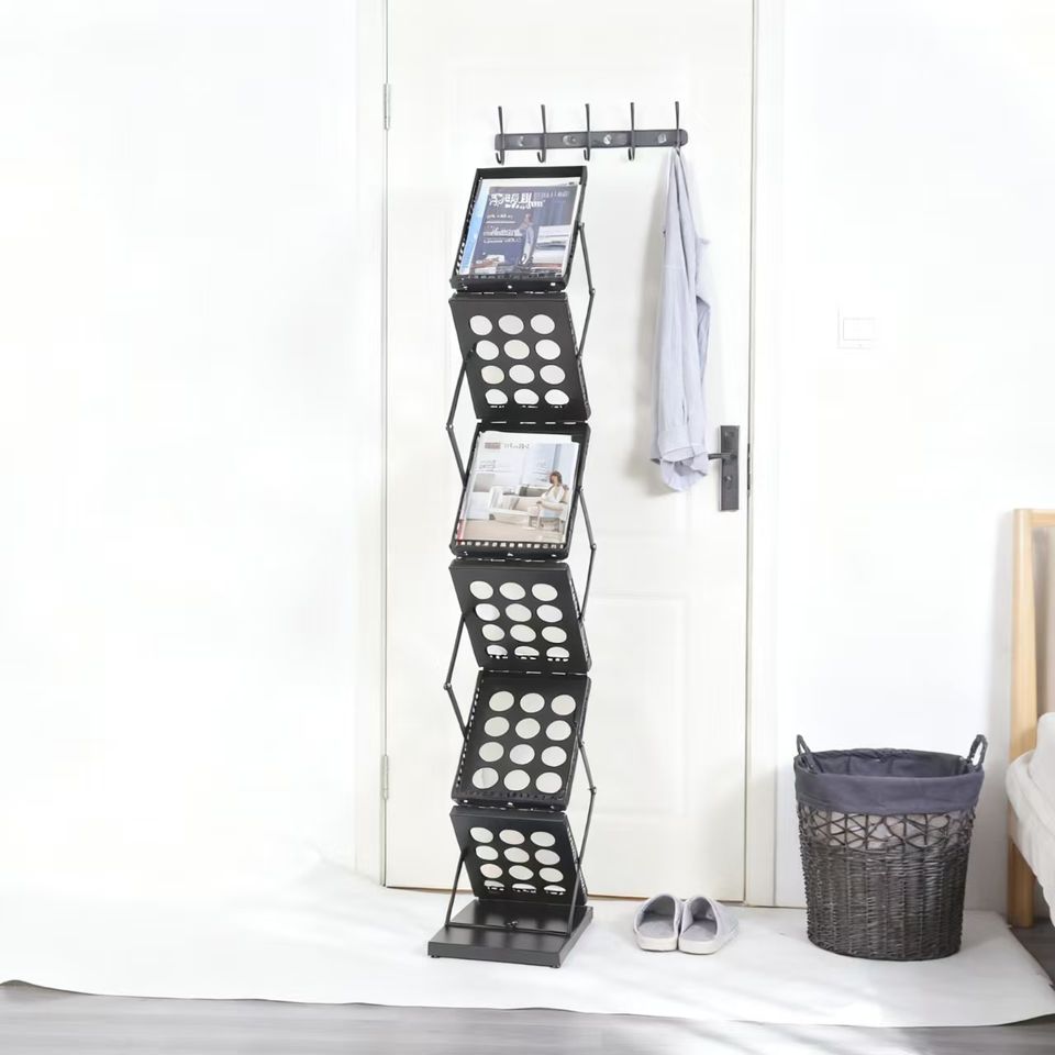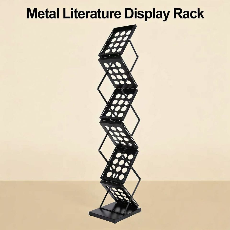 Espositore Professionale Alto per Brochure, Struttura in Ferro Nero, Alta Capacità per Banche, Agenzie Immobiliari, Uffici e Centri Informazioni