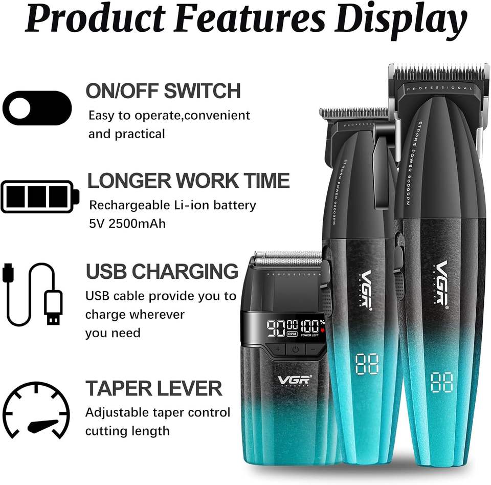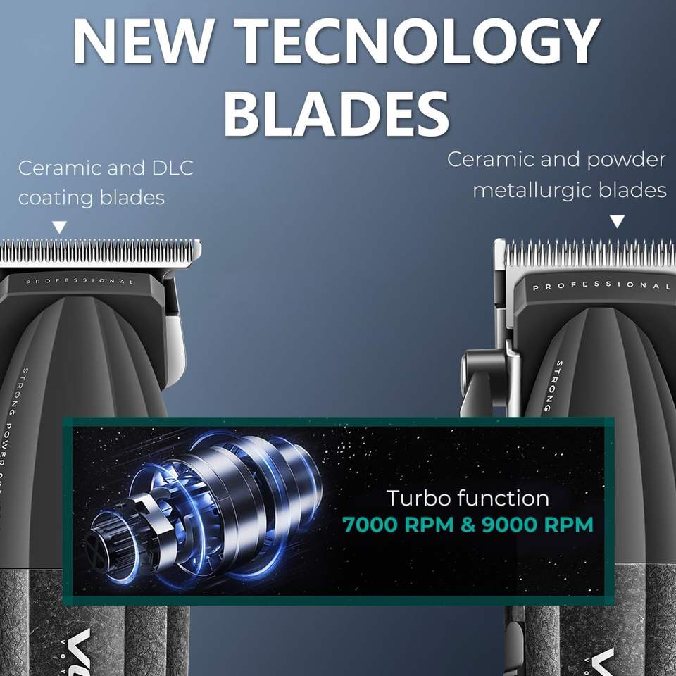 Tagliacapelli Professionale USB a Due Velocità con Lama in Ceramica, 9000 RPM, Display LCD Regolabile, per Uso Domestico, Istruzioni in Inglese