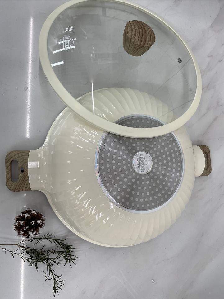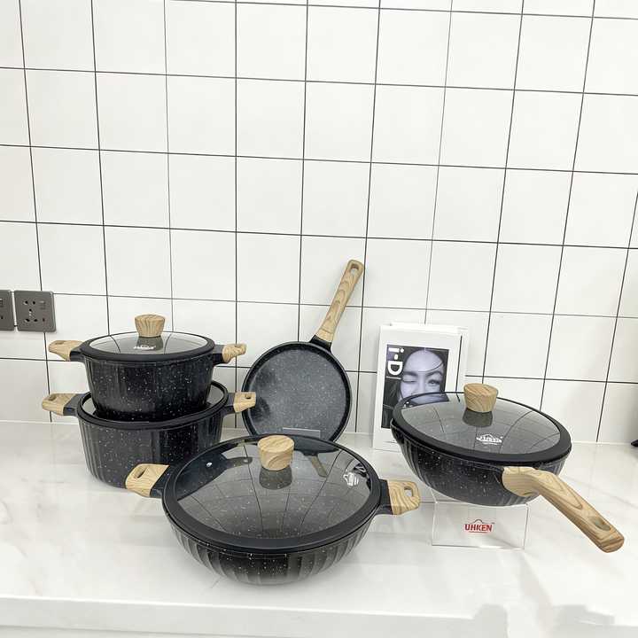 Set di Pentole Professionali Uakeen 9 Pezzi: Casseruola 24-28cm, Teglia Pizza 24cm, Padella Profonda 28cm, Wok 32cm con Fondo per Induzione