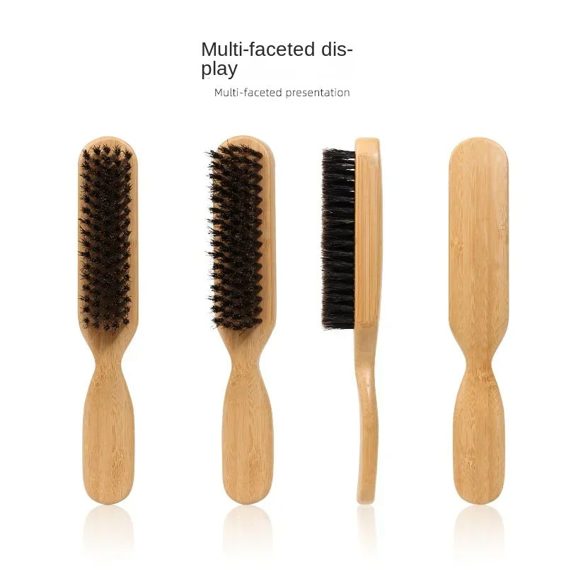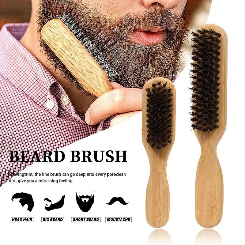 Professional Wood Handle Boar Bristle Hair Beard Brush Anti Static Barber Styling Comb for Men Grooming Kit Shaving Mustache