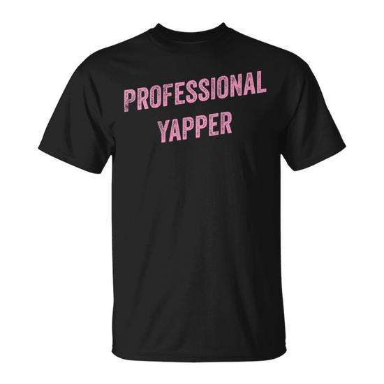 T-shirt professionale Yapper con testo nero e rosa, abbigliamento casual da donna