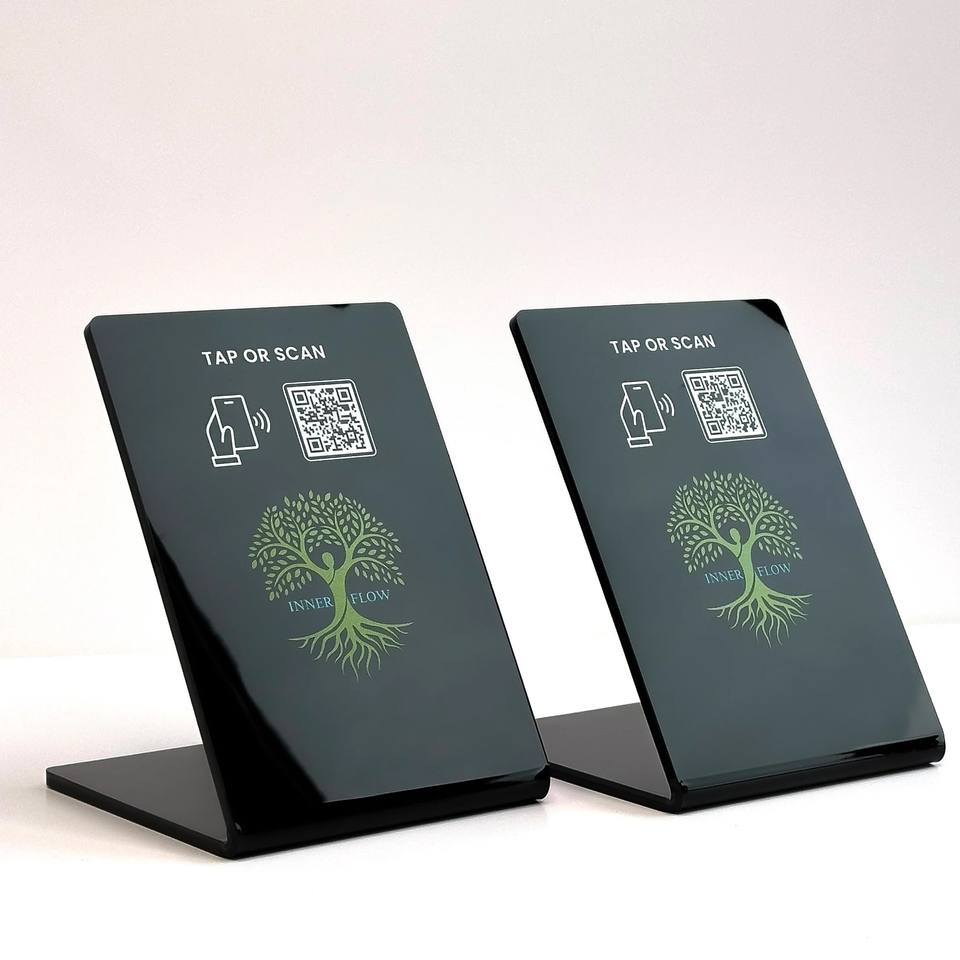 Programmabile NFC Tap Stand google Instagram recensioni QR codice google Map NFC Menu Stand acrilico