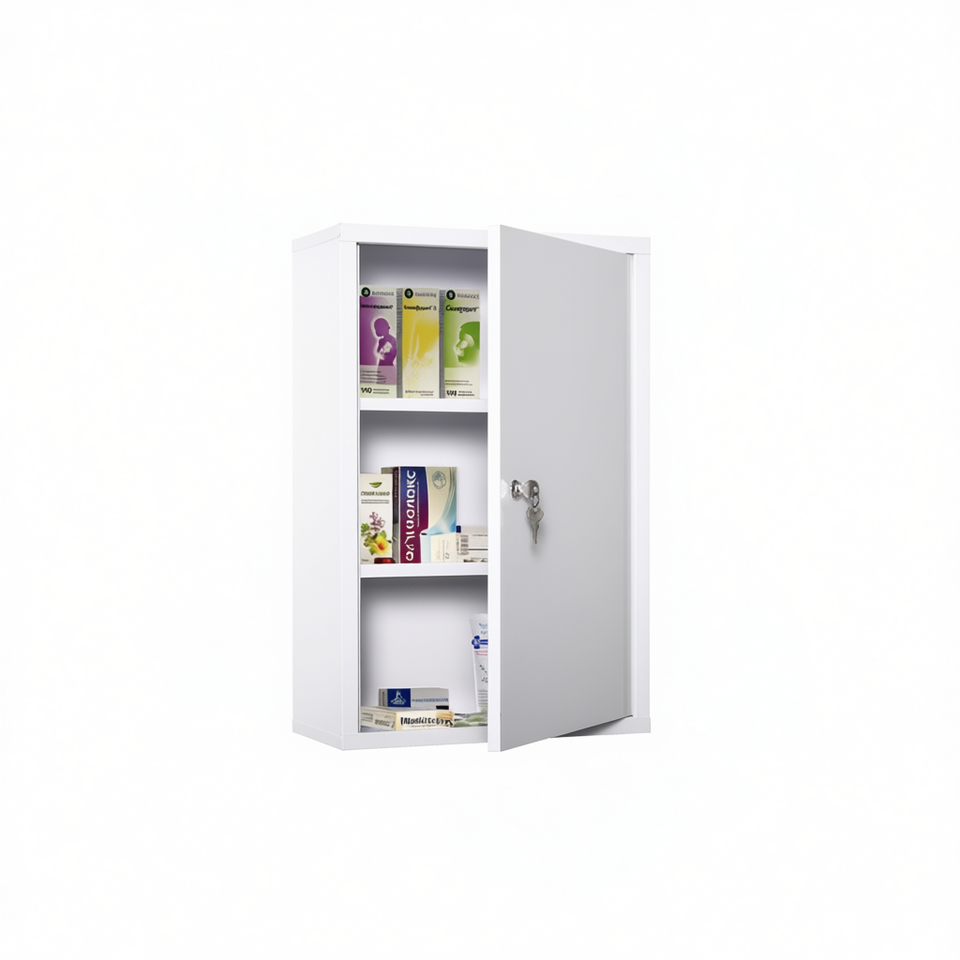Swiship-Ship Wall Cabinet 3-Tier Metal Painted Key Lock Bathroom Shelves Minimalist Design Wall-Mounted Storage