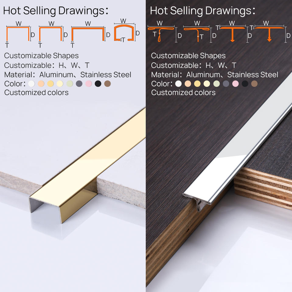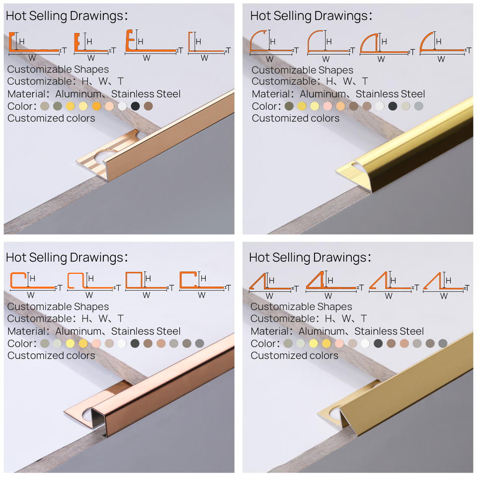 Prolink Metal Factory Tile Accessories Decorative Ceramic Aluminum Alloy/Stainless Steel Tile Edge Trim Corner Profile for Floor