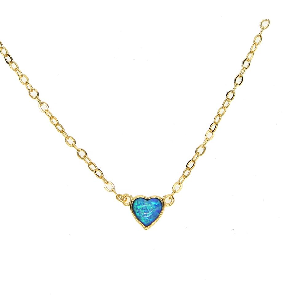 Promozione 2023 regalo di san valentino blu opale di fuoco cuore pietra singola semplice delicata fidanzata regalo collana cuore opale