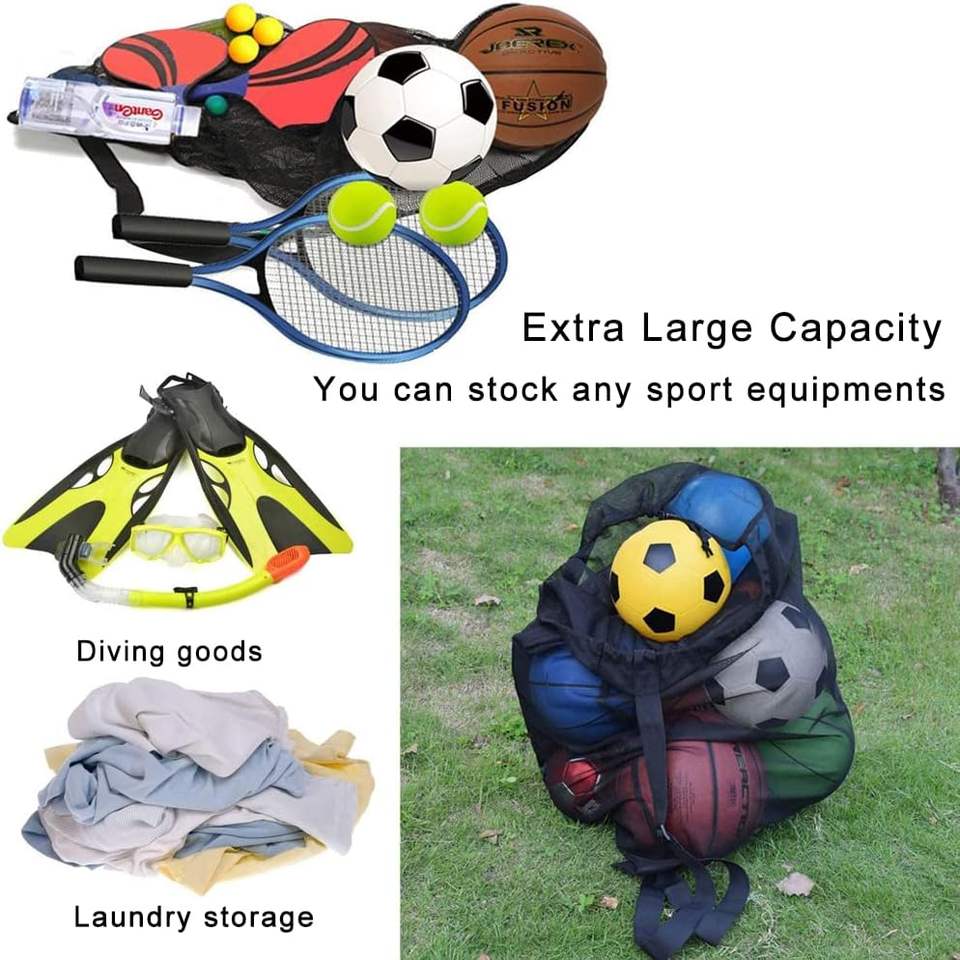 Awoz Borsa a rete in nylon per palloni e attrezzature sportive con cordino a coulisse e fermo scorrevole, tracolla regolabile