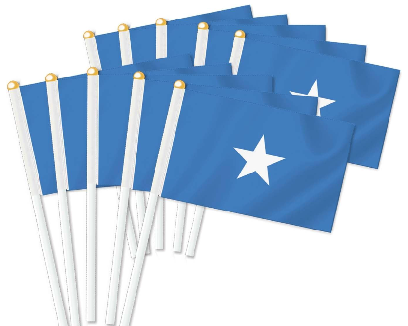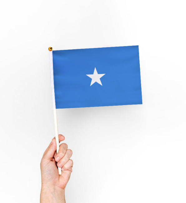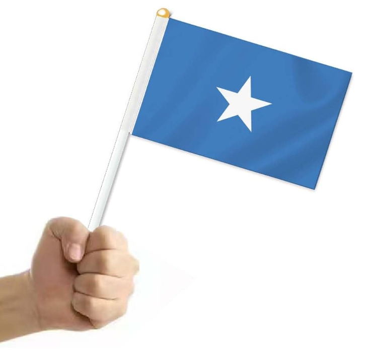 Articoli di promozione colore blu stella bianca bandiere nazionali di tutti i paesi che sventolano bandiera dell'onda della mano Somali