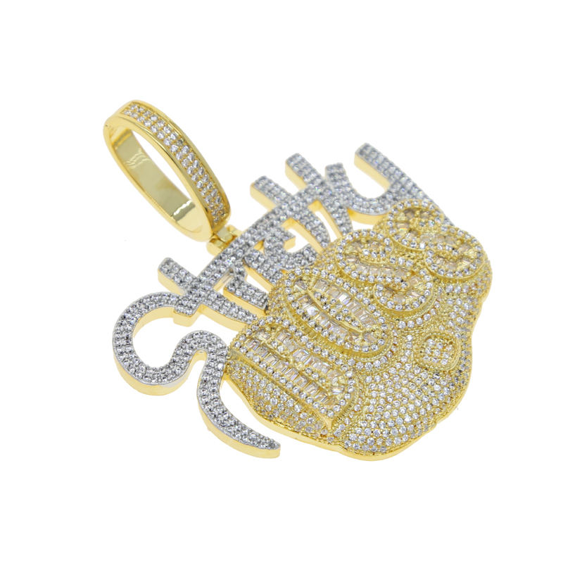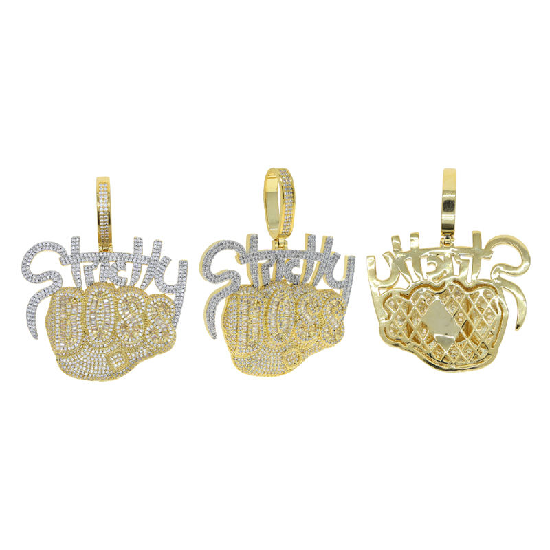Promotion Letter Strictly Boss Pendant Necklace Full Paved Iced Out Bling CZ Silver Gold Two Stone Men Boy Hip Hop Fine Jewelry