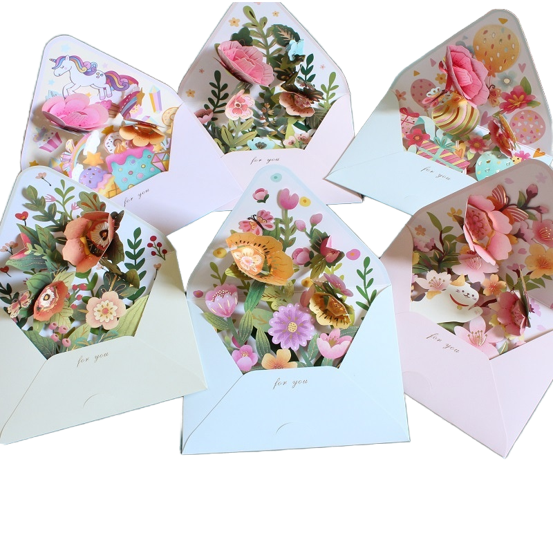 Promozionale 3 pz creativo fiore 3D biglietto di auguri auguri giorno dell'insegnante di compleanno grazie Gift Card insegnante con busta