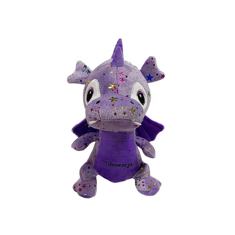Drago di peluche personalizzato promozionale, animali di peluche viola, simpatico dinosauro giocattolo, drago di peluche cinese